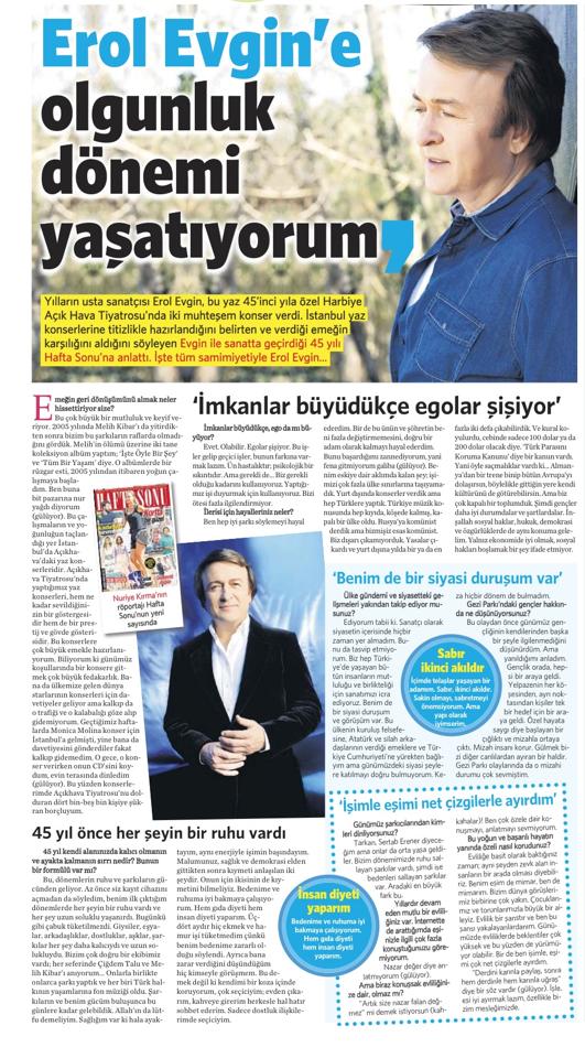 Erol Evgin Hürriyet Pazar Röportajı